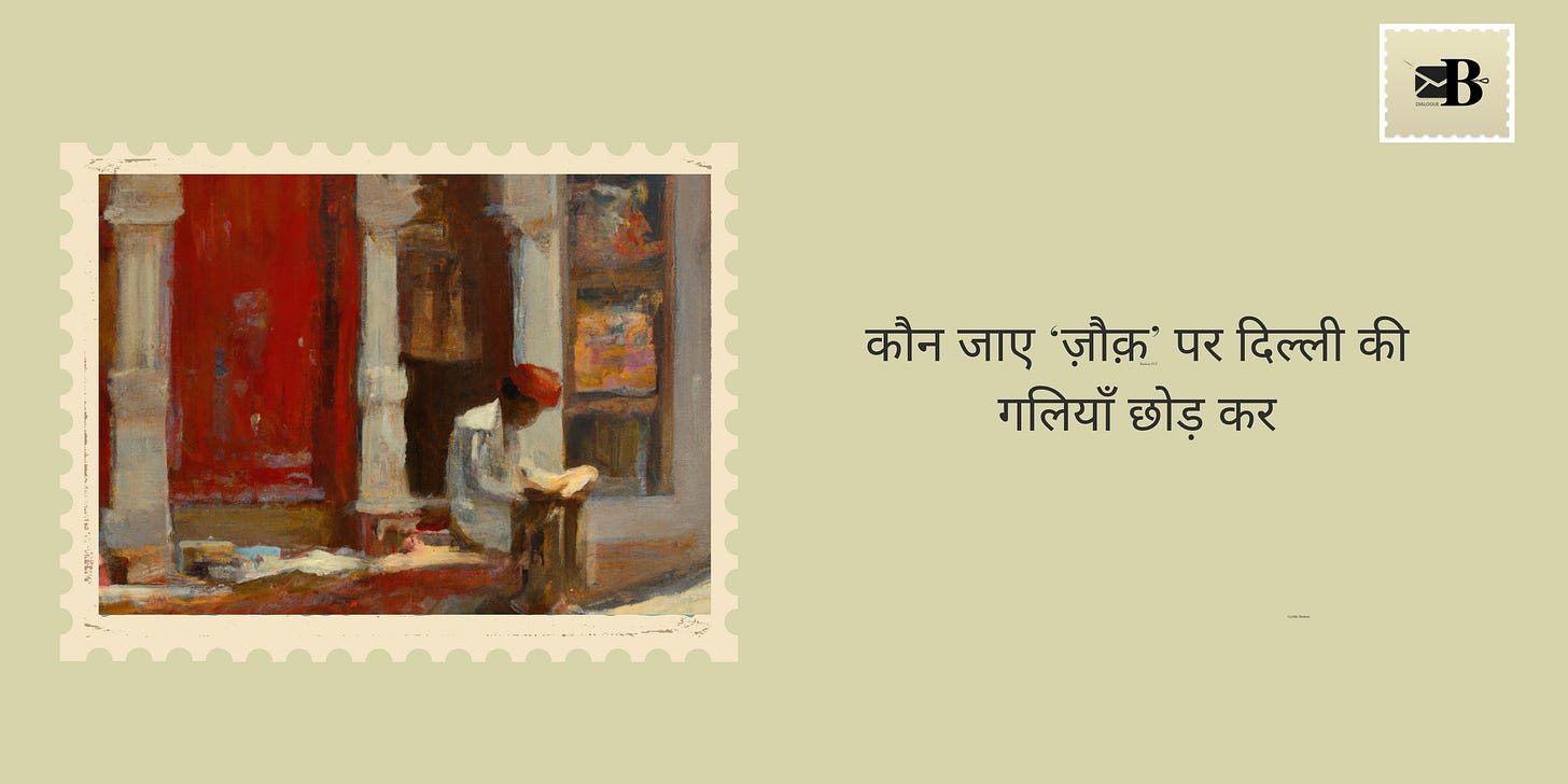 During the night, my mind often wanders to the bustling streets of old Delhi in the 19th century, where I envision myself as a young poet. As the sun sets on one particular evening, I find myself sitting at Ghantewala Halwai, pen in hand, crafting my Safarnama (Book of Travels).