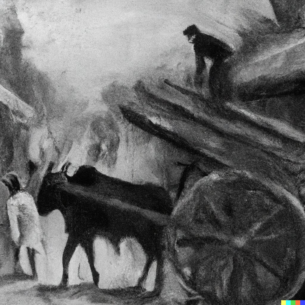 The group of people was traveling to Jaipur on an ox-cart, and the man asked me if I could join them. I agreed only to avoid his questions. The driver had his face covered and wasn't assisting anyone in climbing onto the cart. The man who kept asking questions finally said something other than inquiries. He said, "I don't like traveling in an ox-cart; it's slow and tiring. I love to travel in a horse-drawn carriage." Inside the cart, there were 4 people including me and the man who kept asking questions. There was a young woman sitting on the corner and covering her face with a saree. The man in front of her was I guess her husband, A man I guess in his forties wearing a light blue turban with a long mustache, his eyes were continuously staring at me.